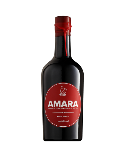 AMARA nasce selezionando le migliori scorze di Arancia Rossa di Sicilia IGP, l’acqua delle sorgenti e le erbe spontanee dell’Etna. Profumi di agrumi, zagara e note erbacee. Un liquore che rappresenta la quintessenza della Sicilia. Le "Arance Rosse di Sicilia IGP" sono protagoniste della ricetta di Amara, un frutto unico al mondo perché nasce in uno speciale contesto vulcanico, caratterizzato da un terreno singolare a quelle latitudini e da forti escursioni termiche che condizionano la crescita di piante dalle proprietà straordinarie che rendono le bottiglie ancora più speciali. Le arance vengono sbucciate una ad una manualmente, le scorze vengono messe in infusione multipla, ripetuta 7 volte, con alcool e erbe spontanee. Alla fine viene aggiunta acqua purissima della sorgente dell'Etna.