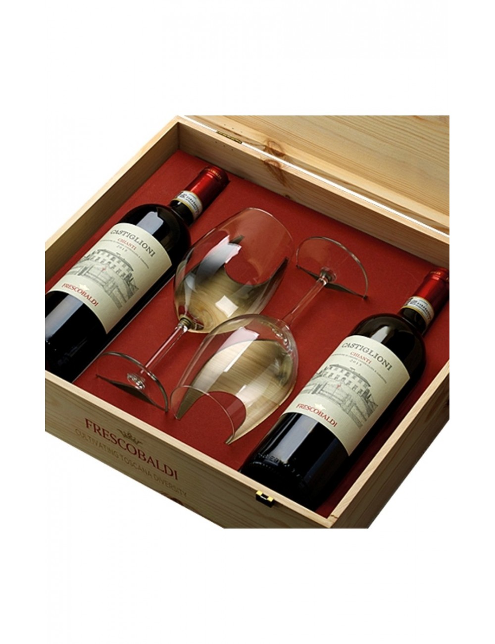 VINO FRESCOBALDI CASSETTA LEGNO CASTIGLIONI CHIANTI 2023+2CALICI