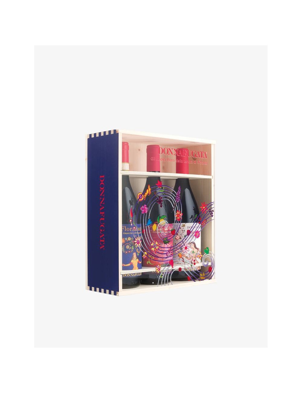 Il cofanetto in legno “Gli Insoliti Rossi della Tenuta di Vittoria” è un tributo all’eleganza. Realizzato con materiali di alta qualità, il legno offre un tocco rustico ma raffinato, simbolo dell’impegno di Donnafugata verso la sostenibilità e l’artigianalità. Le scatole regalo in legno sono da sempre sinonimo di eccellenza, perfette per conservare e presentare vini pregiati. La cassetta in legno contiene 3 bottiglie da 750 ml: Floramundi 2022 cerasuolo di Vittoria Docg, Contesa Dei Venti 2022 Vittoria DOC Nero D'Avola, Bell' Assai 2022 Vittoria Doc Frappato.